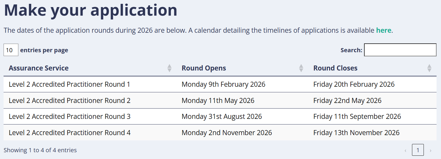 To make an application, please use the button below. Applications will only be processed during the Assurance Rounds unless you have organised a Fast Track timeline directly with the Assurance Team.